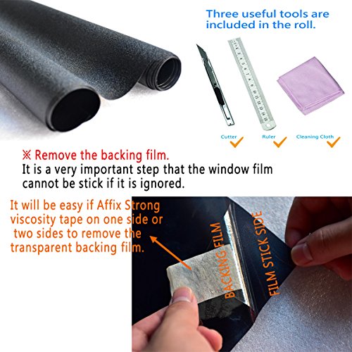 - ✓ FREE TOOLS AND EASY INSTALLATION GUIDE INSIDE PACKAGE: To make installation DIY-friendly. Please Make sure window surface is completely clean and absolutely free of any blemishes, and tear off the outside protection film before you post the privacy window film on the smooth surface. Easy to cut into any size to meet your special demands.