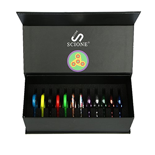 Fidget Spinner Case Holds 12 ADHD Anxiety Toys Stress Relief Fidgets Toys Organizer for Adult Kid Best Autism Hand Spinners Finger Toy Box Focus Fidgeting Restless Trispinner Boxes SCIONE★ Fidget Spinenr Case: Hold up to 12 Fidget Spinners. Size: 9.5'' x 4.5'' x 3.5''. Package Included: 1 Fidget Spinner Case