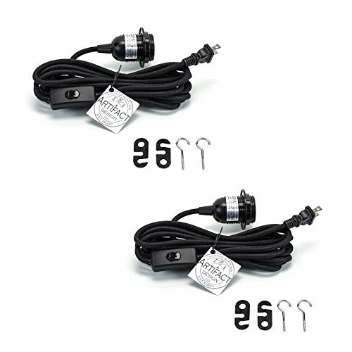 Set of 2 Artifact Design Black Fabric Cord Set With Toggle Switch 15 Feet Hanging Pendant Light Fixtures , Uses Standard Size E-26 Light Bulb , Great for Industrial Vintage Retro DIY Projects