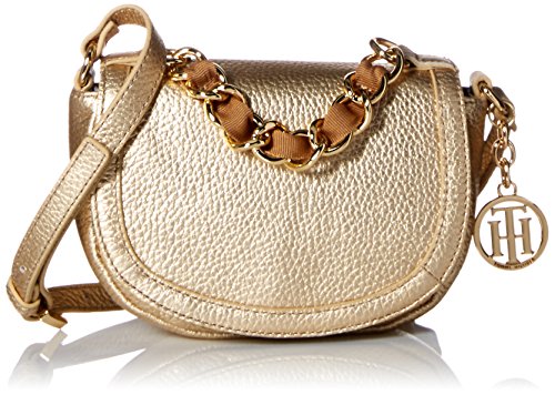 Pebbled leather bag featuring metallic logo fob and decorative chain woven with fabric Adjustable cross-body strap Pockets: 1 interior zip Brand : Tommy Hilfiger Item model num : Jenna Leather Crossbody EAN : 0646130614870