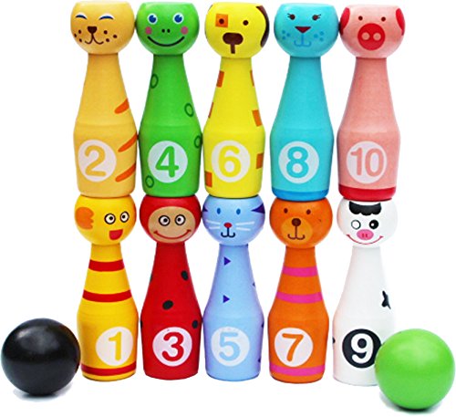 Studio : Toys of Wood Oxford Publisher : Toys of Wood Oxford Binding : Toy Product Description Lovely and colourful animal faces skittles with numbers, a good way to learn numbers while setting up the skittles. It is fun for children to row the balls and knocking the skittles. A game for sharing and take turns and can be play indoor or outdoor. Toys of Wood Oxford Limited, based in Oxford UK, specialises in fine quality multifunctional wooden toys with brand name "Toys of Wood Oxford" and children's fancy costumes "Fun Play". All products by Toys of Wood Oxford are exclusively available from Amazon sold by Toys of Wood Oxford Ltd or by Amazon. All of our products meet the criteria set by the EC Toy Safety Directive and CPSA Standard and tested by International Accredited Labs. We pride ourselves on providing good quality products and first class customer service. We wish our products will bring lots of fun and enjoyment to your children and family. 0