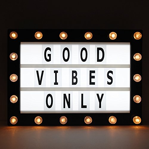 - BRIGHTENS UP ANY ROOM: Place this lightbox, which features 32 white LED back lights and 18 yellow front marquee lights, anywhere you might want to add more light or express yourself with word combinations, characters or symbols