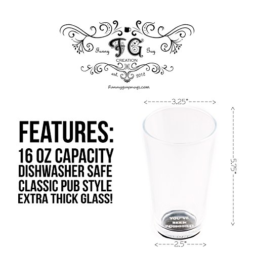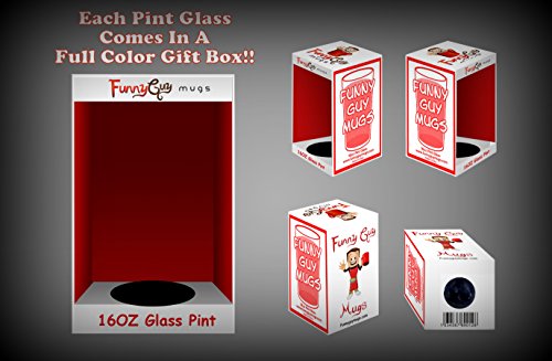 CONTENTS: * One 16 oz Pint Glass * Contents Come New Double Boxed With A Full Color Gift Box MATERIAL: * High Quality Crystal Clear Thick Glass FEATURES: * Classic Pub Style Pint Glass * Bottom Imprint * Dishwasher Safe SIZING: * Holds 16 Ounces * 2.5" Bottom Diameter, 5.75" Tall, 3.25" Mouth Diameter * Please See Sizing Image For More Details ABOUT FUNNY GUY MUGS: This Pint Glass Was Created Exclusively By Funny Guy Mugs. Funny Guy Mugs Is A Trusted Company Founded By Brothers Whose Mission Is To Create High Quality Products That Put A Smile On Your Face.