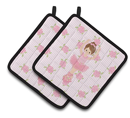 Caroline's Treasures Ballerina Brunette Front Pose Pair of Pot Holders, 7.5HX7.5W, Multicolor