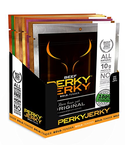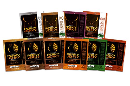 Perky Jerky 100% Grass-Fed Beef and All Natural Turkey Variety Pack, 2.2 ounce bags (Pack of 10)