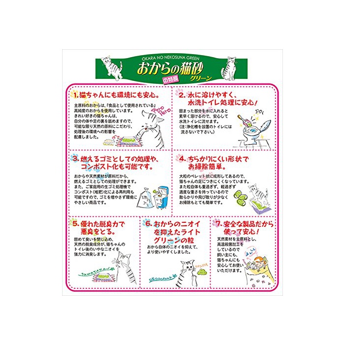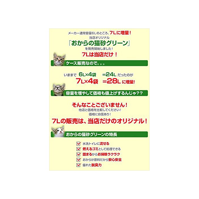 원본상품명:常陸化工 トイレに流せる おからの猫砂 グリ?ン (7L×4袋)