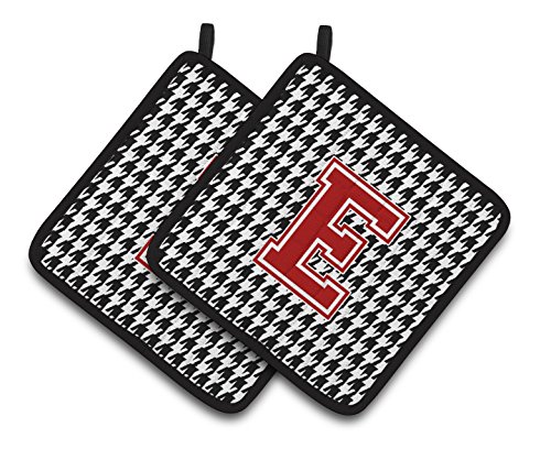 Caroline's Treasures Letter E Monogram - Houndstooth black Pair of Pot Holders CJ1021-EPTHD, 7.5HX7.5W, Multicolor