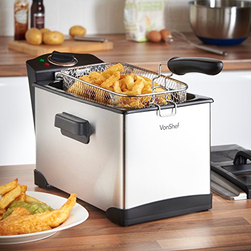 3.5 LITER CAPACITY: The VonShef Deep Fryer has a 15 Cup or 3.5 Liter oil capacity with up to 2.6 pound per batch cooking ability.