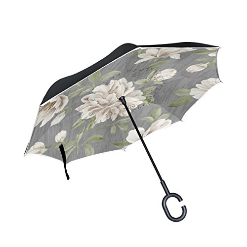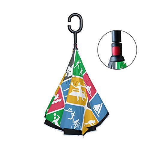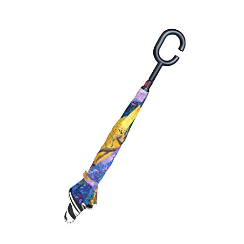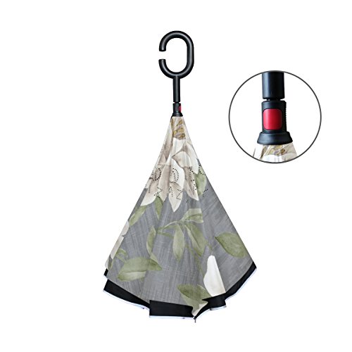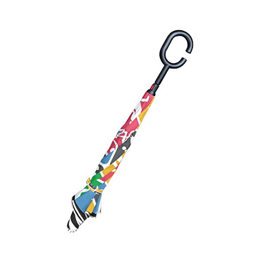 -. Feature : PERFECT GIFT- This Cars Reverse Umbrella Is a Necessary Tool for your car, Also as an ideal gift for your relatives, friends, colleagues, lovers, etc. / INNOVATIONAL INVERTED DESIGN- The surface of the umbrella cloth wet will cleverly folded,the dry side expose when the reverse umbrella close,So it won't get wet when you get in or out of the car. The design eliminates the worries of people. / C-SHAPED HANDEL: Cross the C-shape handle over your arm, hands free when holding a baby, mobile, or anything else. Just hang the reverse rainy umbrella on wrist. / WINDPROOF & UV Proof: Umbrella by the double superimposed waterproof umbrella cloth composition, umbrella cloth for the super waterproof umbrella cloth, umbrella cloth material for the pure polyester fabric; UPF>50+ Sunscreen fabric production, Double layer protection. / EASY TO STORAGE: It can stand up on its own, ideal for when you have nowhere to prop your umbrella up against. It will also keep the wet part of the umbrella inside once you've closed it, so things don't get dripped on when you put it away after coming indoors.