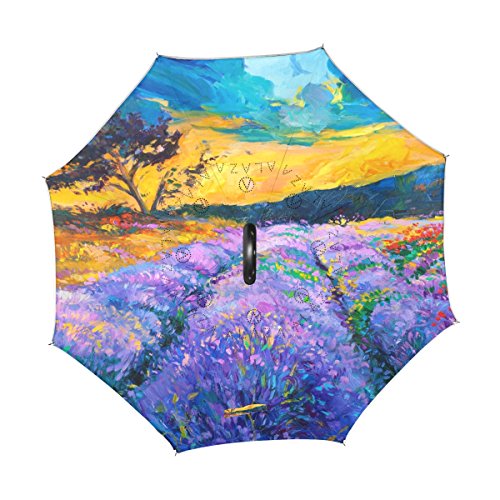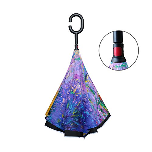 -. Title : AIDEESS Rural Scene Flower Garden Oil Painting Print Windproof Reverse Folding Double Layer Inverted Umbrella with C-shaped Hands Free Handle for Travelling and Car Use