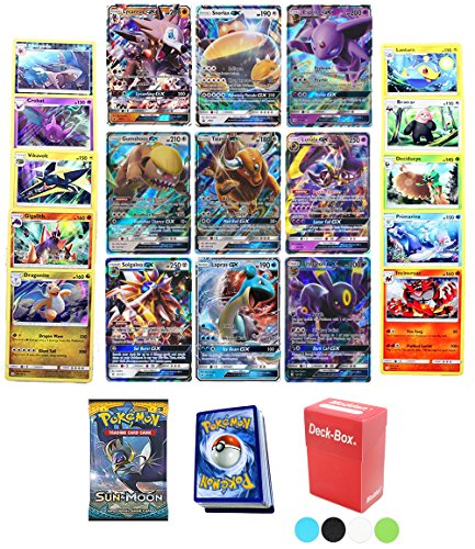 -. Feature : Listing created and custom bundled by Assortmart. All Trademark and copyright belong to the original respective manufacturer. (Pokemon Cards will be from the Sun & Moon Set) / 20 Common or Uncommon Cards / 5 Holo or Reverse Cards, 5 Rare Cards / 1 Guaranteed GX Card and 1 Random Factory Sealed 10-Card Sun and Moon Booster Pack / EXTRA RANDOM BONUS AND DECK BOX: Includes with 1 random solid color deck box and Bonus could be ANY (1) one of the following: Pokemon Dice Set, Empty Elite Trainer Box, Empty Collector's Tin, Sheet of Pokemon Stickers, Damage & Poison Counter Coin, Collectible Pokemon Pin, Pokemon Pencils (2), Pokemon Dividers (5), Pokemon notepad, Pokemon Coin, or GX Marker.