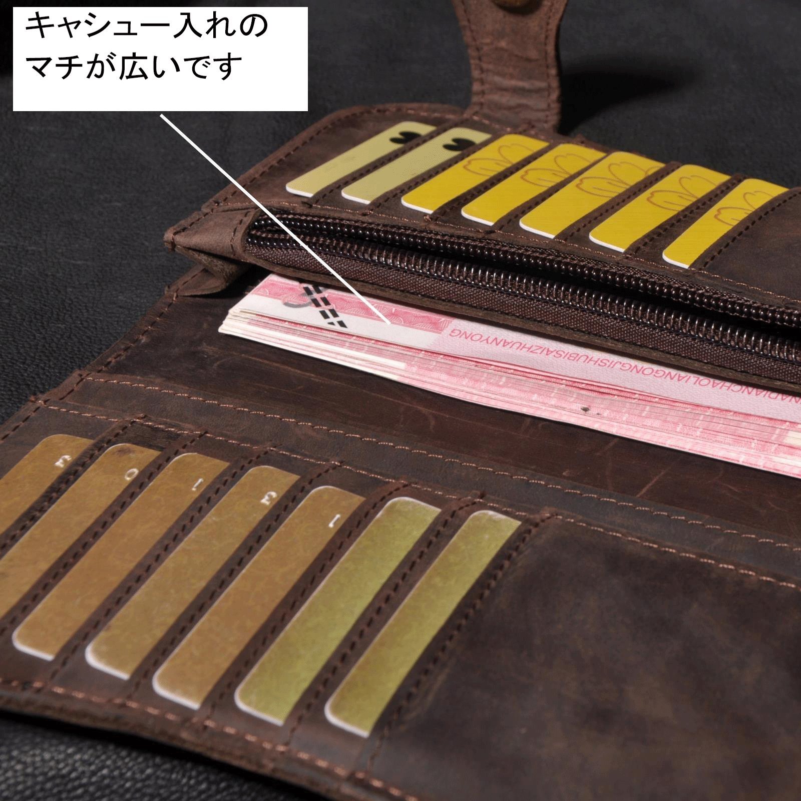 A state that stores 50 sheets of cash in a gusset wide cash entrance