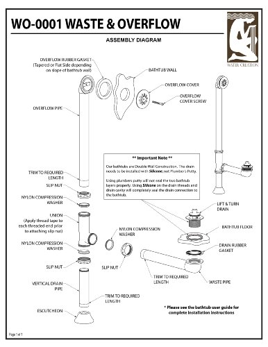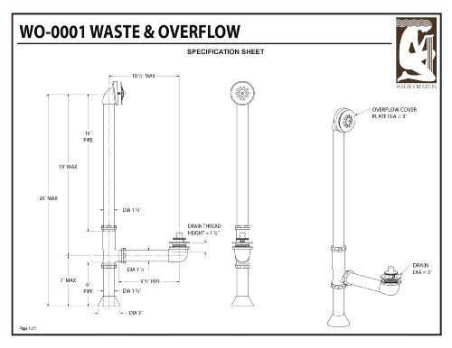 Water Creation WO-0001-05 Lift and Turn Exposed Finish Tub Drain for Claw Foot or Other Elegant Tubs