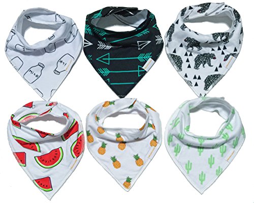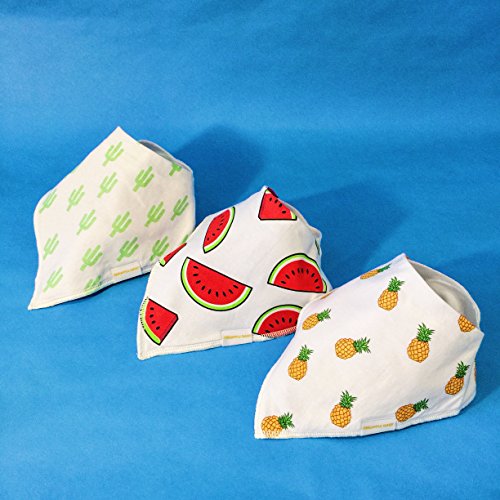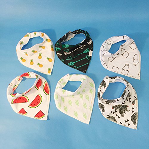 -. Binding : Baby Product -. Brand : Pineapple Baby -. EAN : 0647603758381 -. Feature : Front:100% Cotton Back:100% Polyester To ensure safety, do not leave the bib on an infant or child while sleeping or while unsupervised as this may lead to suffocation or strangulation. Keep away from fire. Be sure to air dry or hang dry. Drying in the machine will make the colors fade faster and can alter the shape and size of the bib. / PINEAPPLE BABY STYLE - These patterns pop and add personality to an already trendy bandana. Featuring unique patterns that compliment and enhance fashionable clothing, your baby will look trendy and stay dry while drooling and teething. / PERFECT & ESSENTIAL BABY GIFT - These colorful baby bandanas are perfect (and useful!) gifts for new parents - including those keeping the baby's gender a secret! / 100% ABSORBENT COTTON DROOL BIB - The front of the bib (cotton) absorbs all of the drool while the back (a soft fleece) keep the baby comfortable and dry. ADJUSTABLE FIT - The bandanas adjust to fit newborns and toddlers ages 3-24 months. Nickel-free snaps make them easy for parents to pop on and off but difficult for infants and toddlers to constantly pull off. / MONEY BACK GUARANTEE - We do our absolute best to make sure you get a perfect product, but if you are unsatisfied in any way, we will refund your money with no questions asked. -. IsAdultProduct : 0 -. Label : Pineapple Baby -. Manufacturer : Pineapple Baby -. ProductGroup : Baby Product -. ProductTypeName : BABY_PRODUCT -. Publisher : Pineapple Baby -. Studio : Pineapple Baby -. Title : Baby Bandana Drool Teething Feeding Bib Unisex 6 Pack Gift Set by Pineapple Baby -. UPC : 647603758381