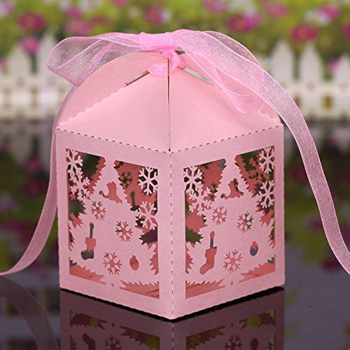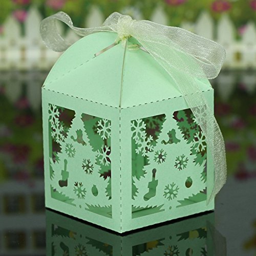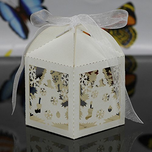 Krismile 50PCS Merry Christmas Laser Cut Snowflake Favor Box ,Wedding Candy Box In Pearlescent Paper ,Party Show Candy Box (White)
