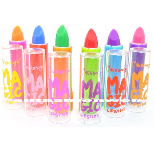 LOT OF 6 CHERIMOYA COLOR CHANGING MAGIC SCENTED LIPSTICK WITH ALOE VERA + FREE EARRING