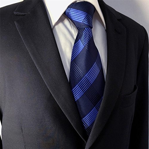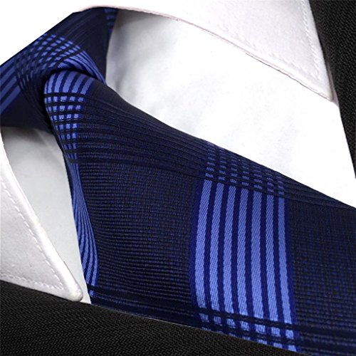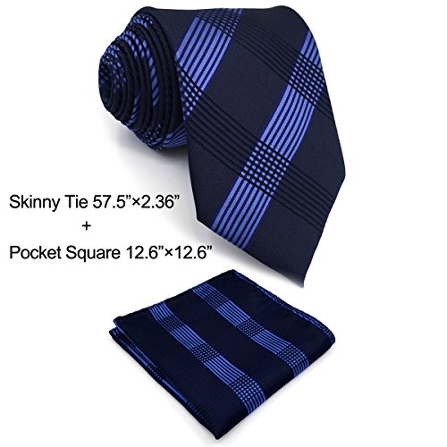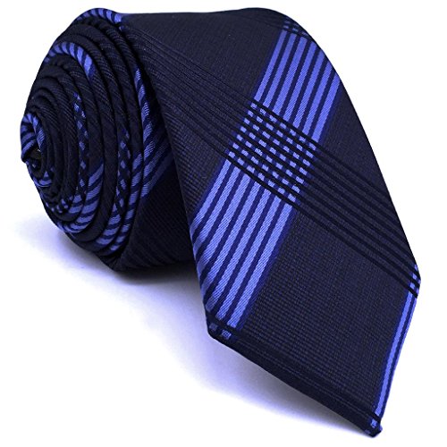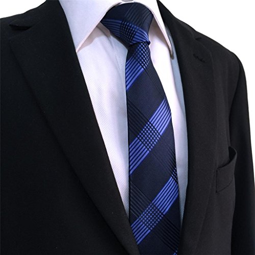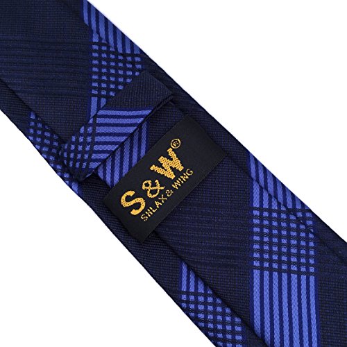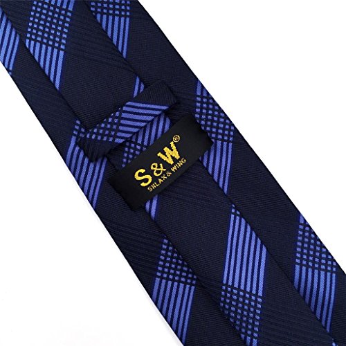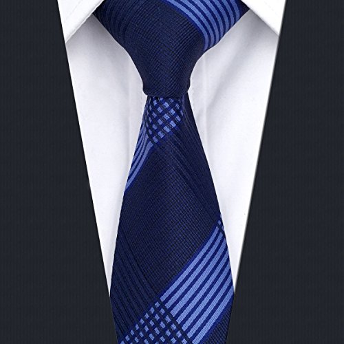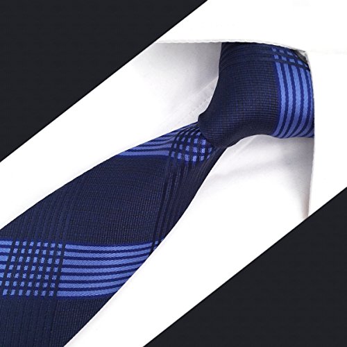 | ShlaxWing Men's Ties Blue Navy Checkered Checks Silk Neckties For Men Business Skinny |