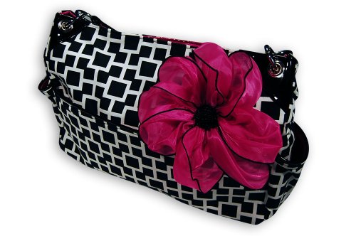 ReleaseDate : 2013-03-26 Studio : Caught Ya Lookin' Publisher : Caught Ya Lookin' Binding : Baby Product Product Description This chic diaper bag by Caught ya Lookin' will carry baby's essentials and keep you looking trendy and stylish. Bag has black and white cotton and black patent leather bottom and handles with magenta satin interior. Measuring 21" x 13" it is large enough to hold anything baby might need. The interior is plastic lined and makes cleaning spills a breeze. Made in USA. 0