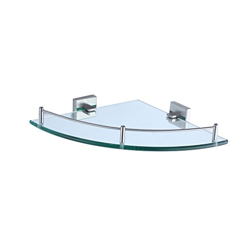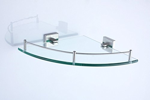 Wall Mouned Bathroom Corner Glass Shower Shelf Stainless Steel Nickel