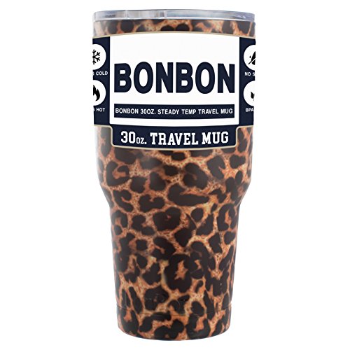 BonBon 30 ounce (887 mL) is the perfect, affordable Steady Temp Travel Mug. Available in 17 different color styles, you'd be hard pressed to find one that you ISN'T Perfect for you! Our Travel Mugs are made with 304 Food Quality-Grade Stainless Steel and BPA free! Not only are they efficient and stylish - but also toxin free! All mugs come with a standard clear lid.Feature