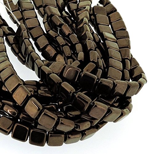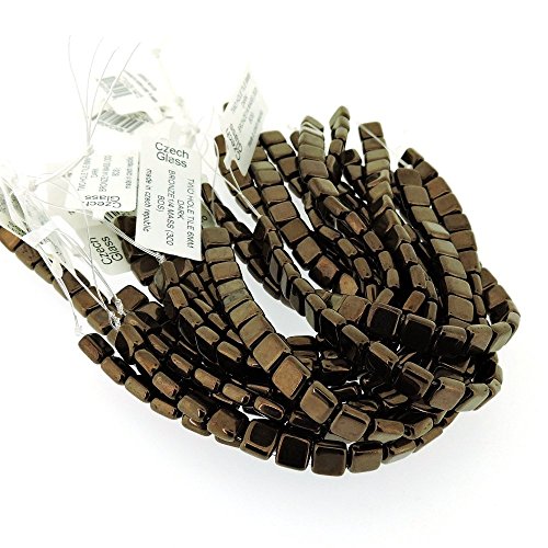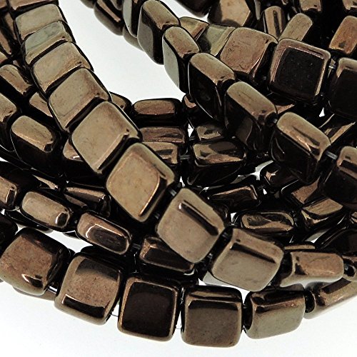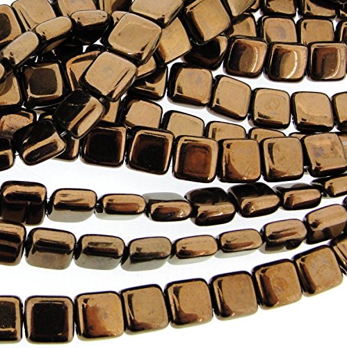 Czechmate 6mm Square Glass Czech Two Hole Tile Bead - Dark Bronze