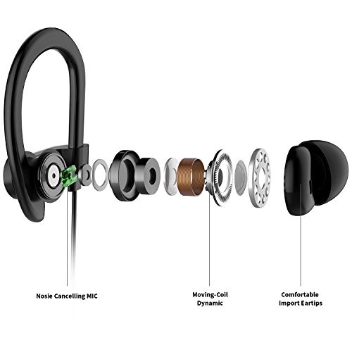 PERFECT ERGONOMIC FIT: Designed with a microphone for perfect fit every time. The comfortable and secure earhooks naturally fit your ears and never falling out. Neckband design prevents troublesome wires from tangling during your workout. Using food-grade S/M/L silicone rubber earmuffs protects your ear’s health and guaranteeing a comfortable wearing experience.