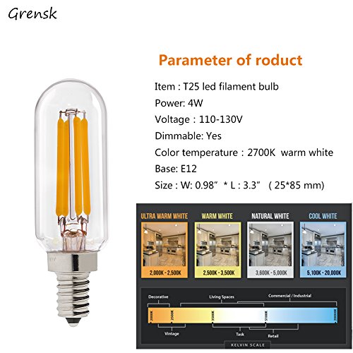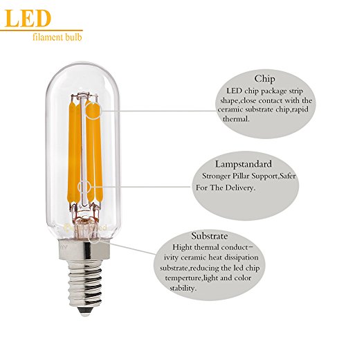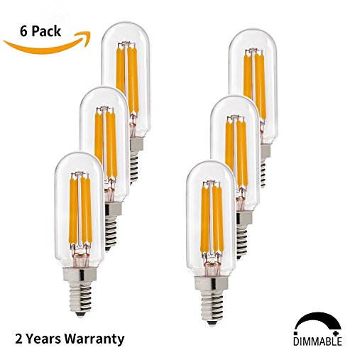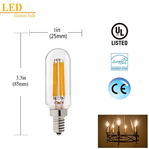 Century Light - 4W Edison LED Filament Tubular Bulb , 2700K Warm White 400LM, Candelabra (E12) Base Light Bulb,T8 ( T25 ) Short Tube Shape , 40 Watt Equivalent , Dimmable , UL-Listed (6-PACK)