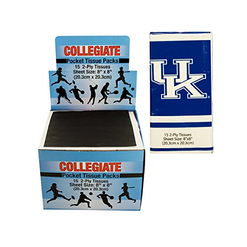 Studio : Kole Imports Publisher : Kole Imports Binding : Kitchen Product Description Perfect for packing along and supporting your favorite team, these collegiate licensed University of Kentucky pocket tissue packs feature small resalable packs with colorful team artwork. Each pack measures approximately 4" x 1" x 2" and contains 15 2-ply plain white tissues. Sheet size: 8" x 8". countertop display comes with 48 pieces. 0