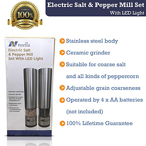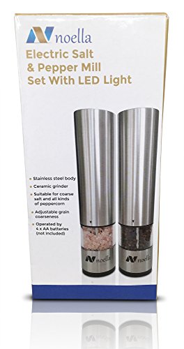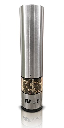 #1 Automatic Salt and Pepper Grinder Set: Best Electric Pepper Mill and Salt Grinder on the Market By Noella with LED Light, Quality Stainless Steel Construction - 100x Better Than Manual Grinders