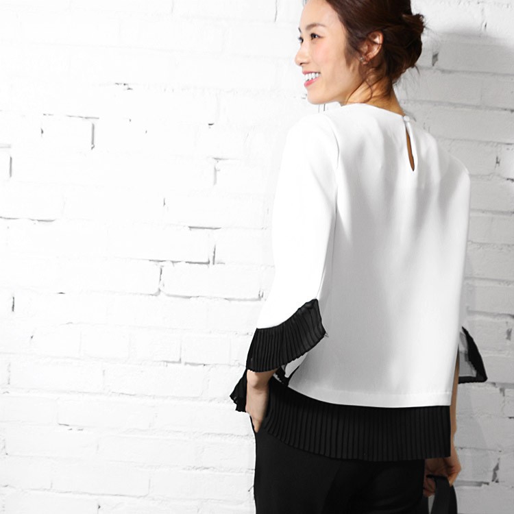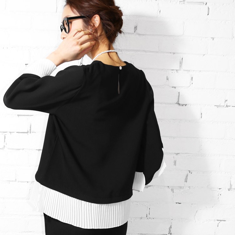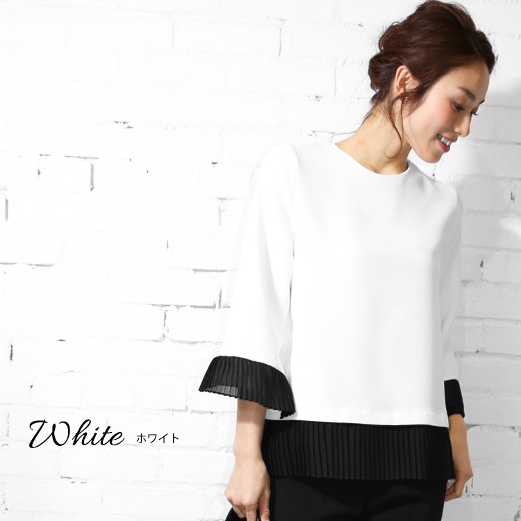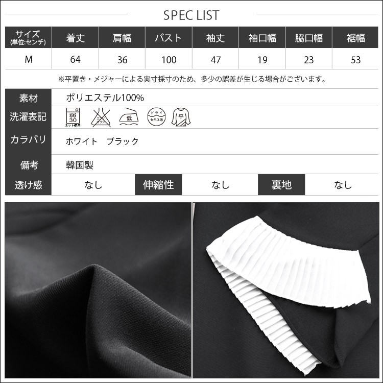 商品名:プリーツトップス 品番:t92036 カラー:ホワイト、ブラック サイズ:M 実寸:着丈 64cm 肩幅 36cm バスト 100cm 袖丈 47cm 袖口幅 19cm 脇口幅 23cm 裾幅 53cm 素材:ポリエステル100% 透け感:なし 伸縮性:なし 裏地:なし 備考:韓国製、メール便(郵3)対応 ※実寸は平置きでメジャーによる採寸のため、多少の誤差が生じる場合がございます