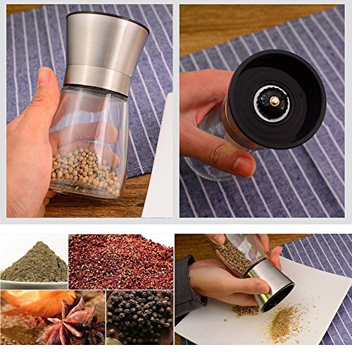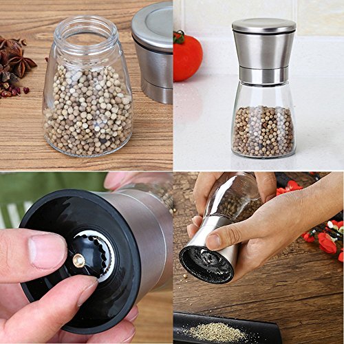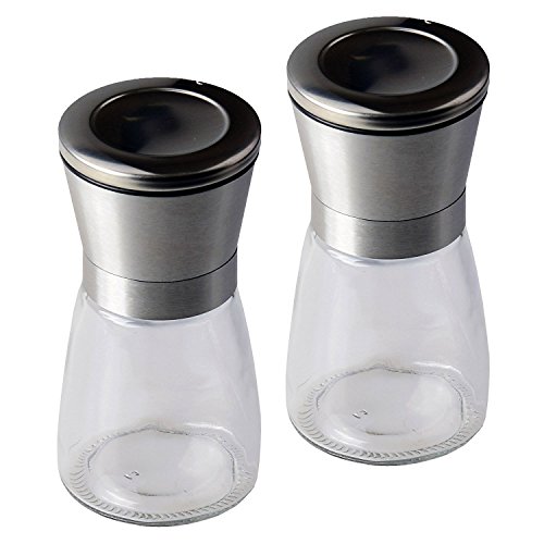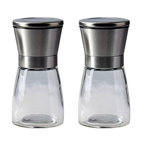 Gam3Gear Stainless Steel and Glass Body Salt and Pepper Grinder Set Adjustable Coarseness Spice Mill Grinder