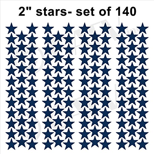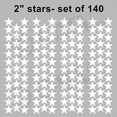 -. Feature : Star wall pattern decals - comes in three different sizes - 2" set of 140; 3" set of 48; 5" set of 20; Lots of great colors / All of our colors are a Matte Finish except for our Metallic colors which have a nice subtle shimmer to them but are not glossy. / PLEASE READ: Before clicking "Add to Cart" be sure that it says "Sold by Wall Sayings Vinyl Lettering". Any other sellers listed on this item are doing so illegally because WALL SAYINGS VINYL LETTERING is the manufacturer and we do NOT sell to re-sellers. We cannot guarantee the quality of counterfeit decals.Counterfeit decals can have jagged edges and either do not stick at all or they take the paint off your wall upon removal. We are the manufacturer and the ONLY seller of our products. / This decal is an original design/decal made with HIGH QUALITY vinyl ONLY by WALL SAYINGS VINYL LETTERING. It is made in the USA and only shipped by WALL SAYINGS VINYL LETTERING. This decal is NOT made in China, and will never be shipped by a 3rd party. We have been in business since 2004 and are one of the leading Vinyl Decal sellers in the world. / We have been in business since 2004 and are one of the leading Vinyl Decal sellers in the world. We provide detailed application instructions along with a customer service phone number in case you have any questions about application. Vinyl decals can be used in so many ways, they can be applied straight to a wall or be used on numerous surfaces including by not limited to; wood, metal, plastic, paper, ceramic, and glass. Decals are perfect for crafts, making almost any project easy for all.