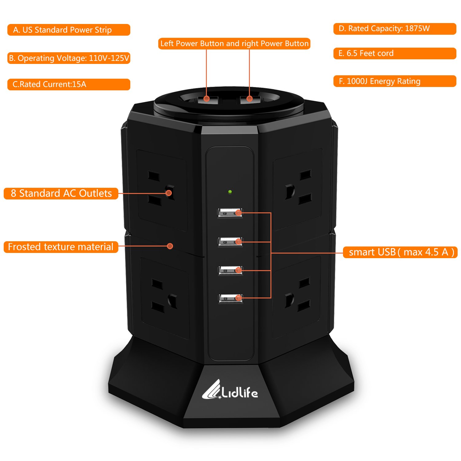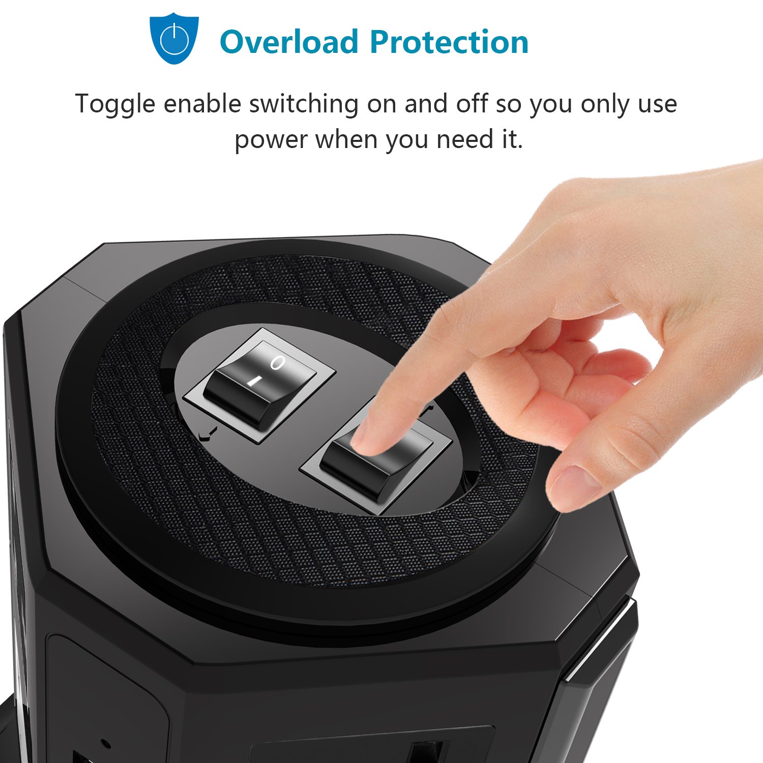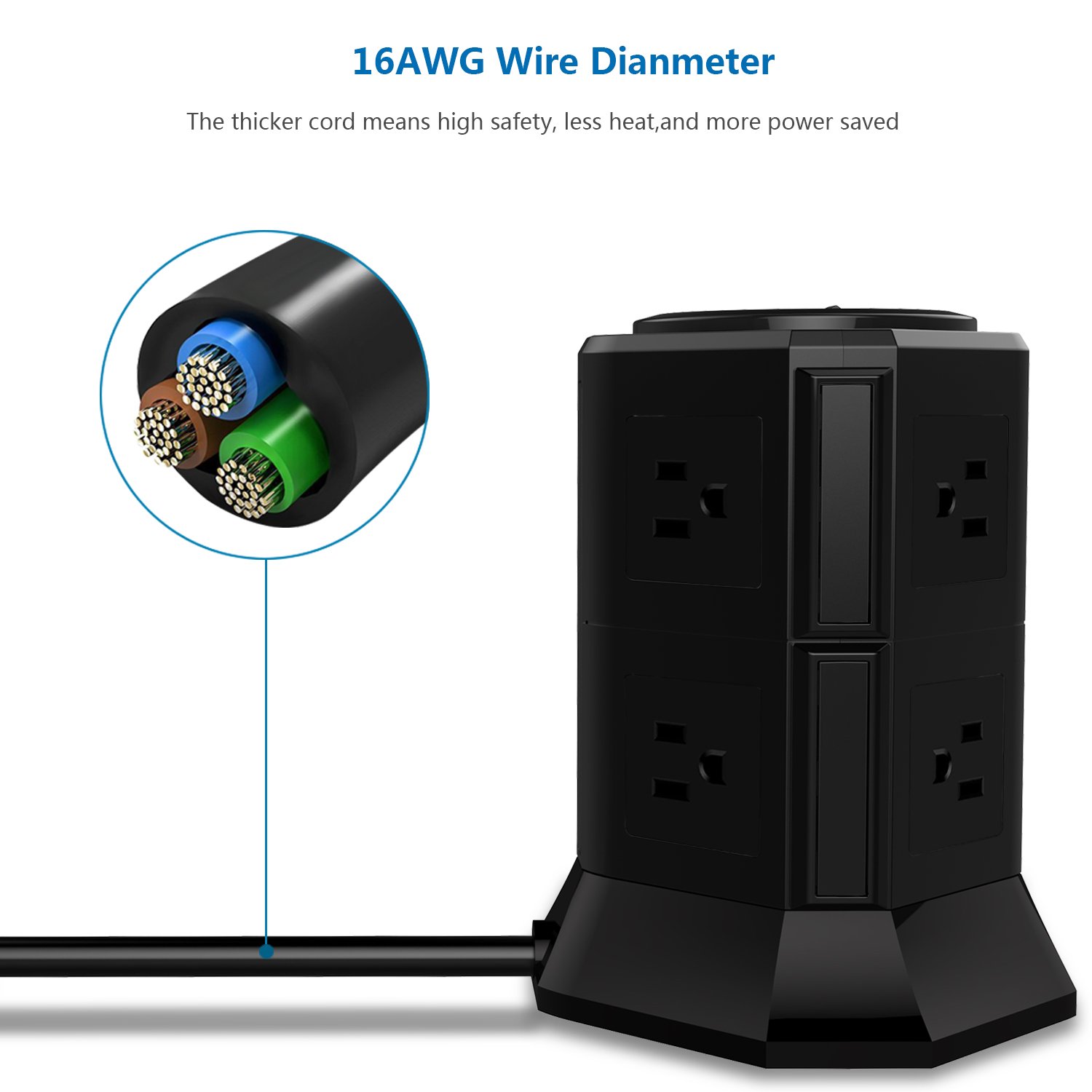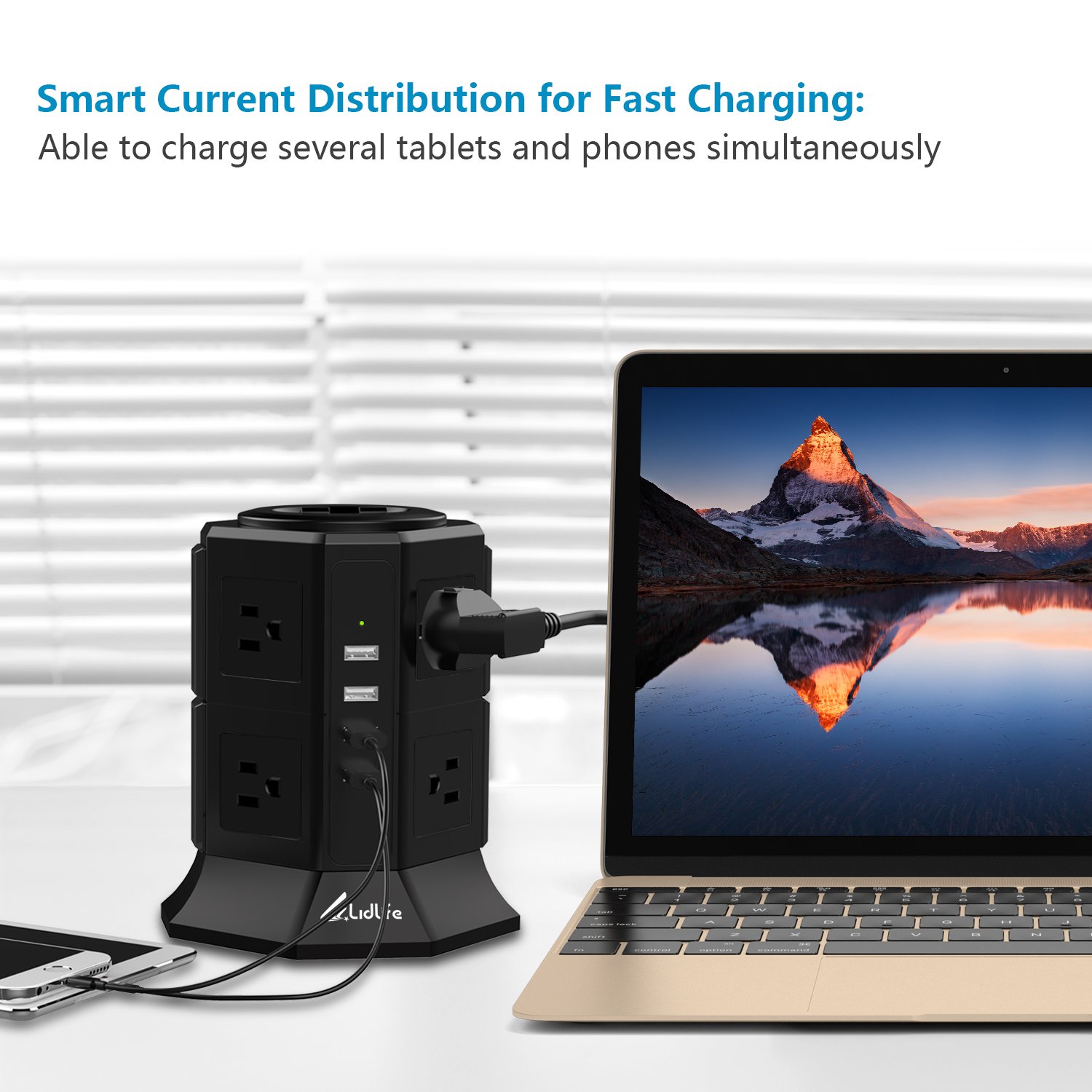 Power supply tap tower type receptacle 8 pieces mouth AC outlet 4 USB port fast charge possible lightning protection guard protection overload protection energy saving