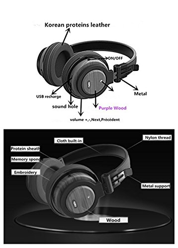 ADM-LC adm-lc: Kopfhorer Musik Bluetooth antibruitversioni CSR V4.08635in Bos (Purple Wood), 32& # Ohm;, & # x3a6; 40mm, 500mAh, 20hz-20khz,: ± 3dB, fur alle PC, MP3, iPhone, Samsun