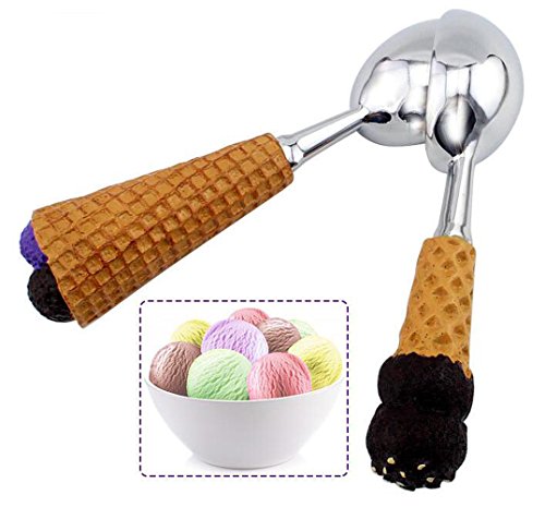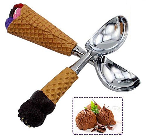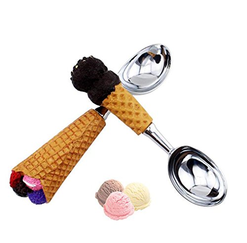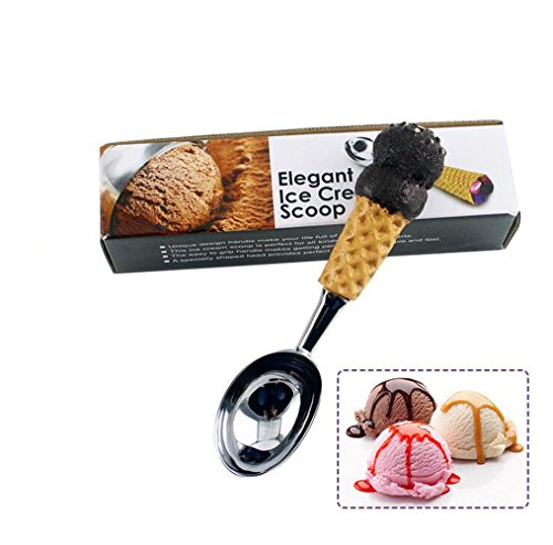 Crystallove DIY Fancy Stainless Steel Ice Cream Scoop Fruit Spoon with Resin Handle (Chocolate Color)