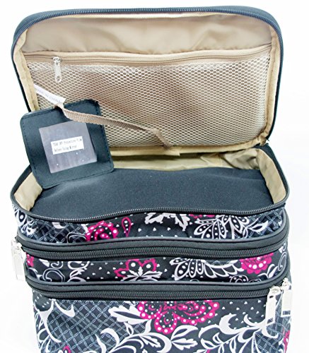 Hot Pink & Black Butterfly on Paisley 3 Tiered Zippered Cosmetic/Travel Bag With Mirror & 5-Piece Makeup Brush Set With Holder BUNDLED! Great Gift Set!