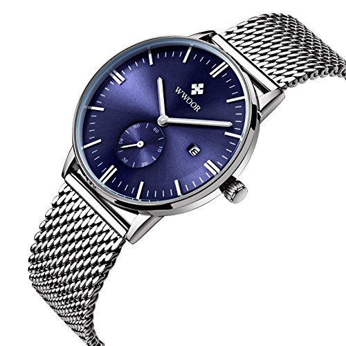 -. Title : WWOOR Men's Luxury Stainless Steel Mesh Band Watch with Date Male Casual Sport Wrist Watches Blue