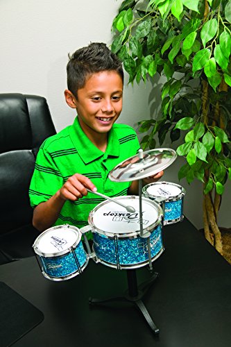 - Feature : This miniature drum set is fully functional, yet sized to fit on a desk top. / The 6-piece set includes three (3) drums, a cymbal, a pair of drumsticks and a stand. / Perfect for a child with an interest in music, but doesn't have the room for a full drum kit. / Some assembly required. / Recommended for ages 3 years and up. / Challenge your children's imaginations and keep them active with Toysmith. / Committed to providing the most imaginative toys along with the highest safety standards, Toysmith has toys appropriate for all age groups. / Toysmith offers toys for any kind of play: active play, science and discovery, arts and crafts, impulse and novelty toys, and nostalgic retro classics.