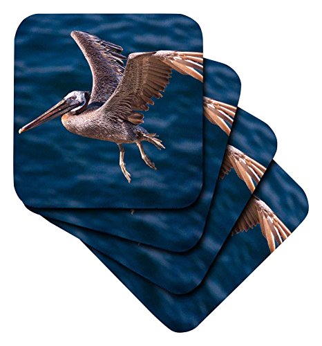 3dRose USA, California, La Jolla. A Pelican Flying Over The Pacific Coast. - Soft Coasters, Set of 4 (cst_206257_1)