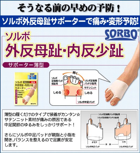 足の痛みや変形が気になる方にお薦めです。筋肉に似た特性の衝撃吸収素材のソルボパットが圧力を分散。しっかりサポートします。外反母趾や内反小趾による痛みを防ぎ歩行を安定させます。