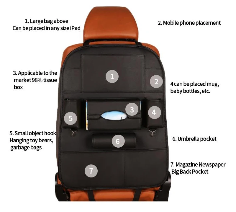 Car Seat Back Storage Bag Placement:Car Seat Back