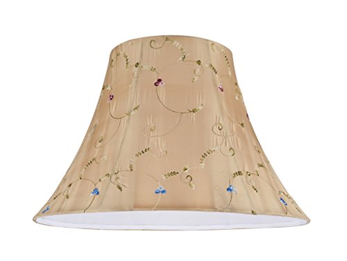 -. Feature : 1 pack transitional Bell replacement lamp shade / Faux Silk Fabric in Gold Floral Embroidered Design (flowers vary in color from item to item) 8" top x 17" bottom x 12" slant height / Spider construction - designed to attach to lamp harp / Applications - For table lamps, accent lamps, vintage lams, candle stick lamps and kid's room lamps