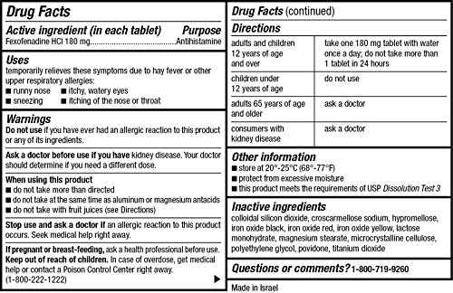-. Feature : Temporarily relieves these symp due to hay fever or other upper respiratory allergies: / Runny nose / Sneezing / Itchy, watery eyes / Itching of the nose or throat