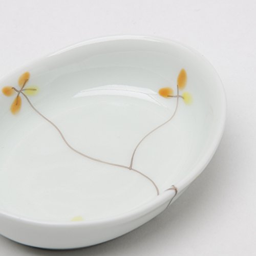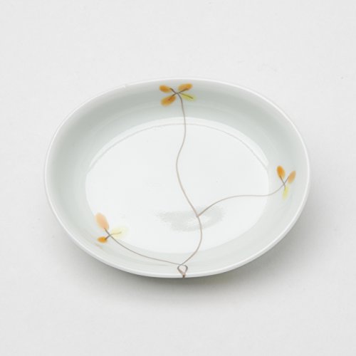 송화당 아리타산 도자기 클로버(황)타원 작은 접시 9.5cm 1 봉가마 ipo0996