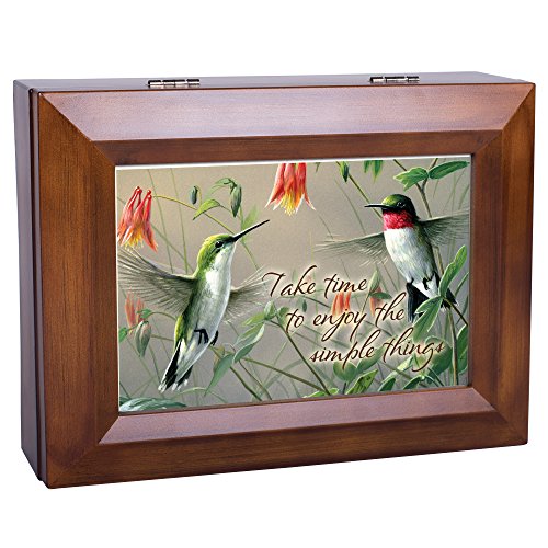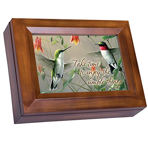 Enjoy Simple Things Hummingbirds Woodgrain Digital Keepsake Music Box Plays Good Morning Beautiful