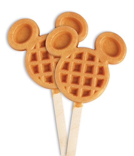 Delight the kids, and any Mickey Mouse fan, with a fun, creative way to jazz up breakfast and snacks. Bakes four Mickey Mouse-shaped waffle sticks on nonstick plates while the classic graphic on the lid gives a fun retro vibe to your kitchen. Safety features include a power indicator light to tell you when it's on and non-skid rubber feet. Comes with a batter measuring cup and 50 wooden sticks to get you started right away.Feature