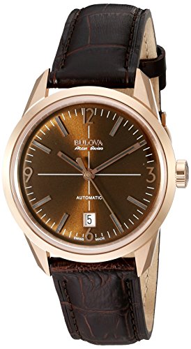 -. Title : Bulova Men's Stainless Steel and Leather Automatic Watch, Color:Brown (Model: 64B124)