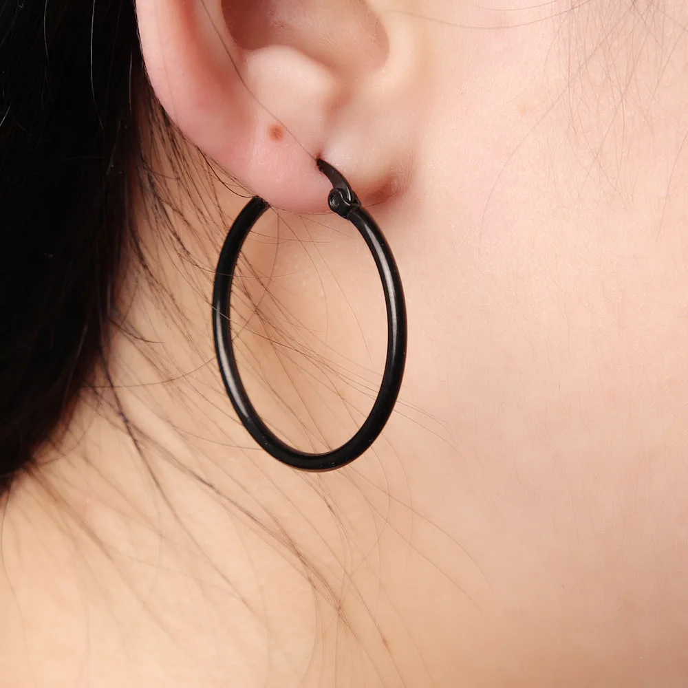 Model Number:Punk Style Stainless Steel Gold\Silver\Black Hoop Earrings