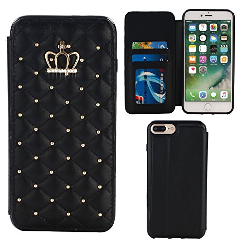 Luxury Imperial Leather Phone Case for iPhone 7 Plus, Miniko(TM) Leather Magnetic Crystal Diamond Bling Wallet Case Flip Cover for iPhone 7 Plus-Black