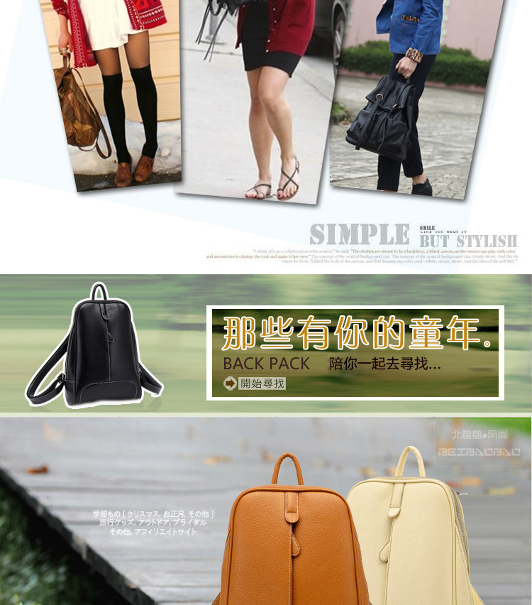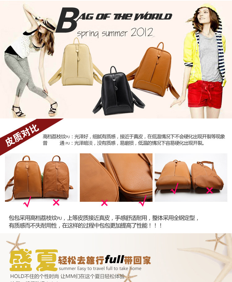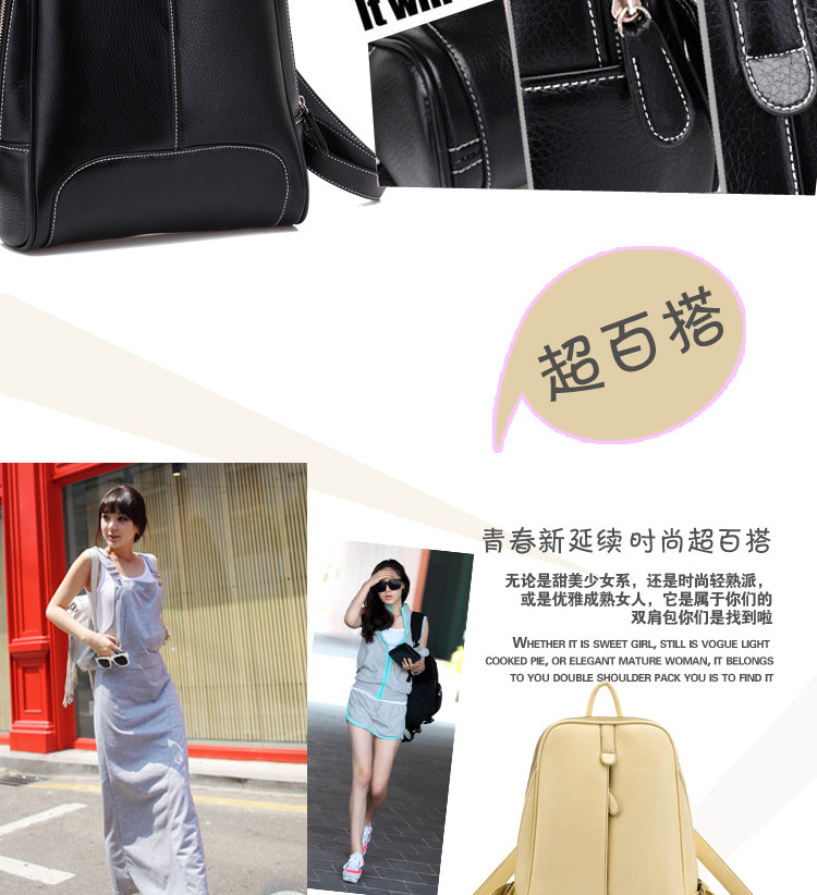 牛皮纹时尚背包。内部1个拉链袋,1个置物袋